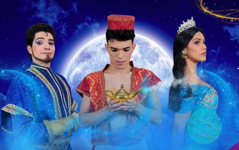 Na peça, vemos a vida de Aladdin mudar ao conhecer a princesa Jasmine, de Agrabah, e encontrar uma lâmpada mágica com um gênio. Entre tapetes voadores e desejos encantados, a trajetória de um dos ladrões mais conhecidos é contada com o apoio de uma trilha sonora envolvente, sob direção musical de Thiago Nunes, além de coreografias e sonoplastia assinadas por Yashimin Sobreira.